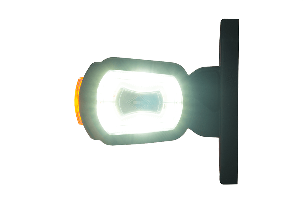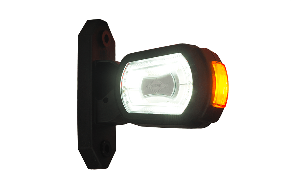3-Funkzionen Begrenzugsleuchte auf dem kurzen Arm HOR 101, kompatibel mit dem Rückwärtssensor, LED dioden 12/24 V, links (rundes Kabel 2×0,75mm2, Länge 0,3 m).
