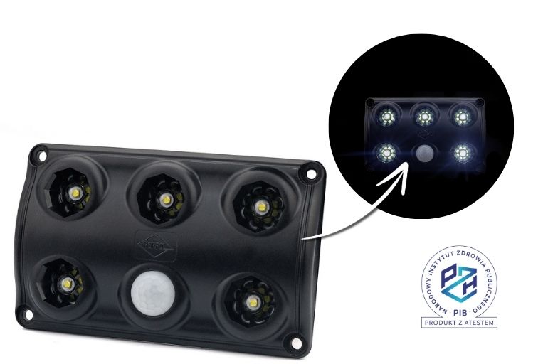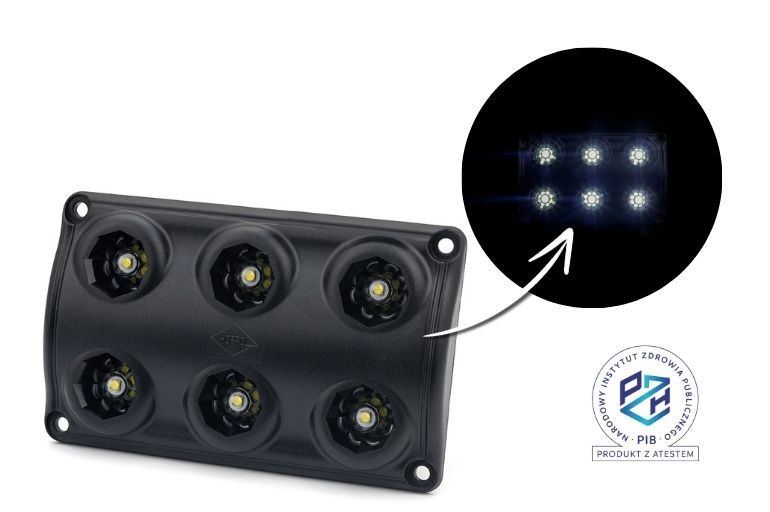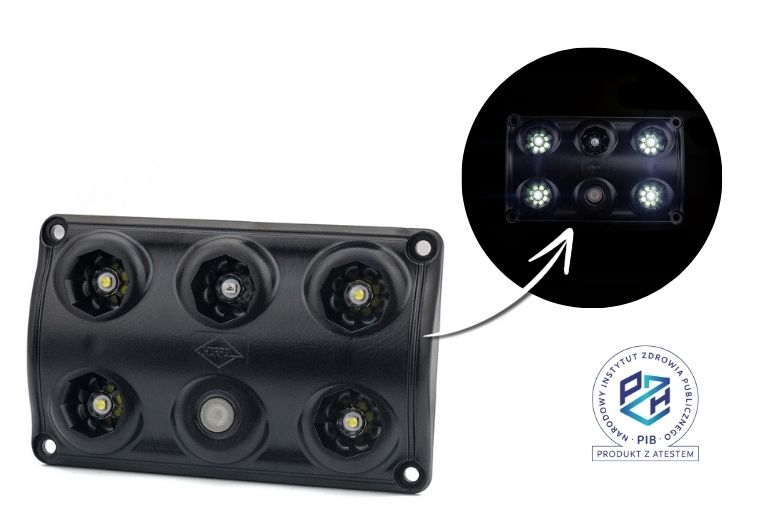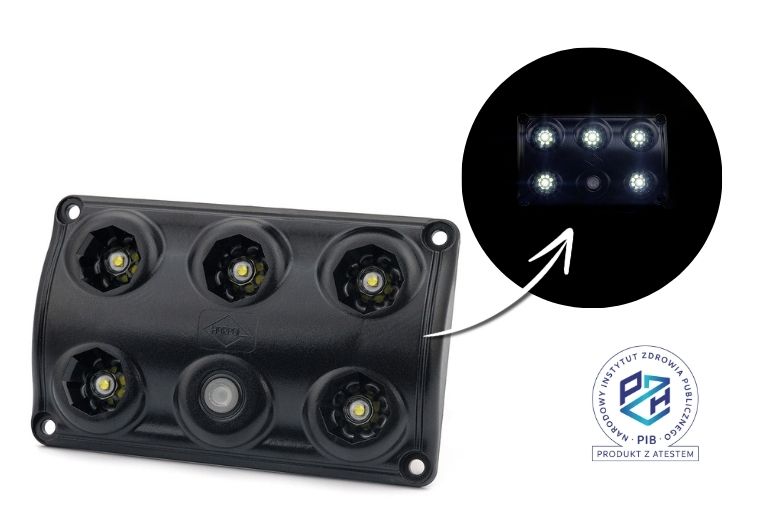 diody białe: 30% – 2,5 W, 100% – 7,5 W; dioda czerwona: 1,3 W